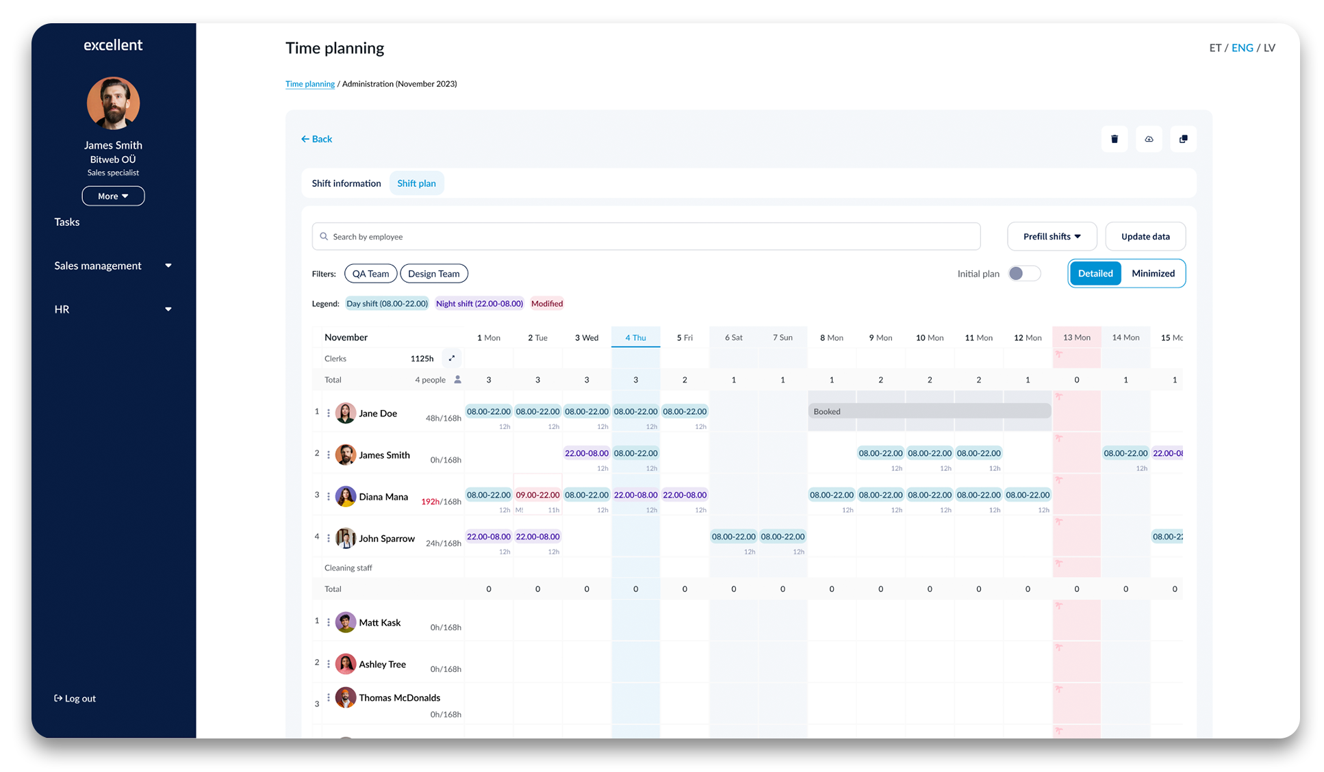 Portālā ir pārskatāmi maiņu grafiki sadalījumā pa departamentiem vai amatiem, lai automātiski veidotu laika uzskaites tabeles un algu aprēķinus pēc nostrādāto stundu skaita. Turklāt grafikā tiek ņemtas vērā arī brīvdienu un nakts stundu likmes, kā arī prombūtnes.