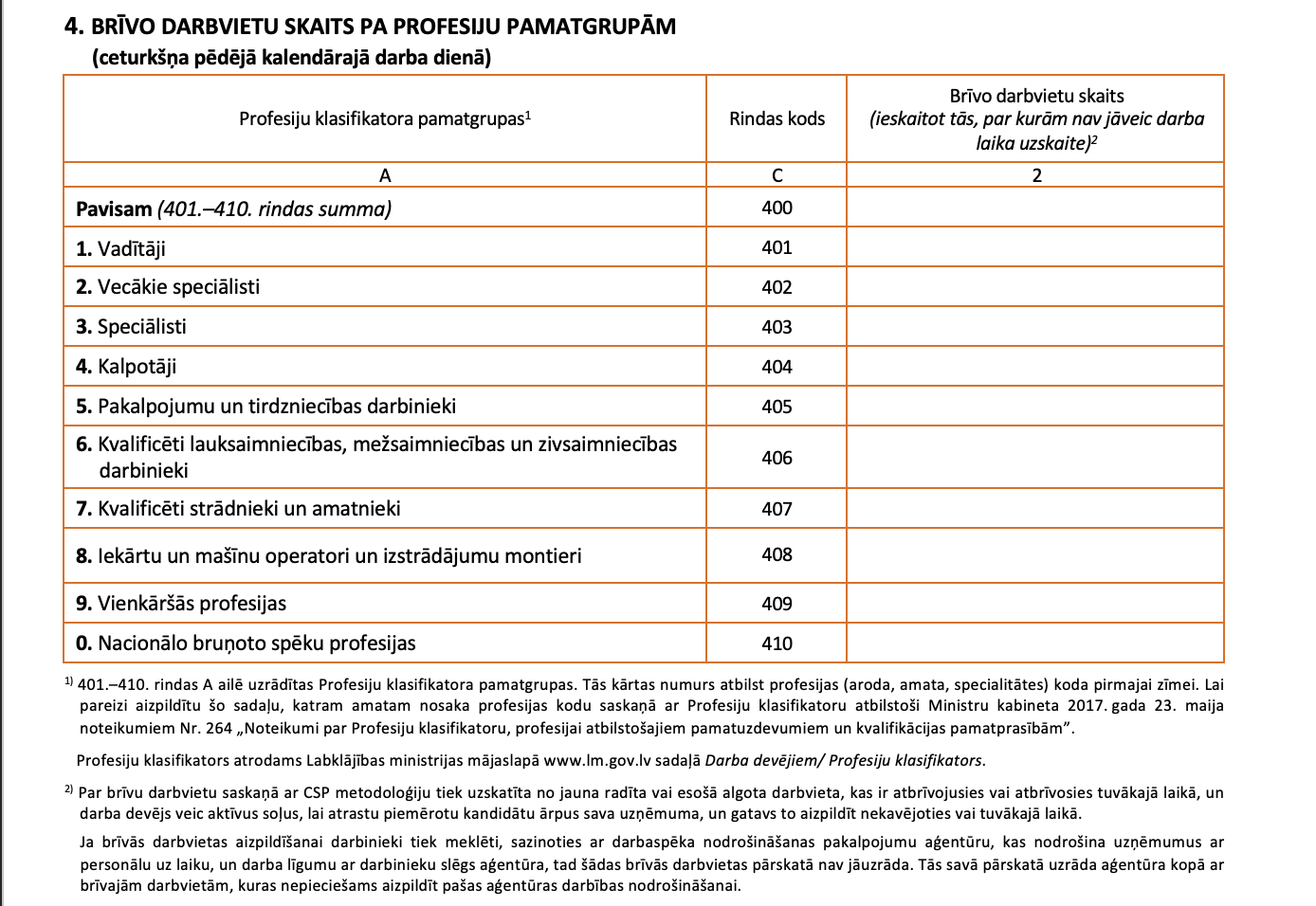 Amatu grupas numerācija tiek balstīta uz CSP EVD atskaites datiem.