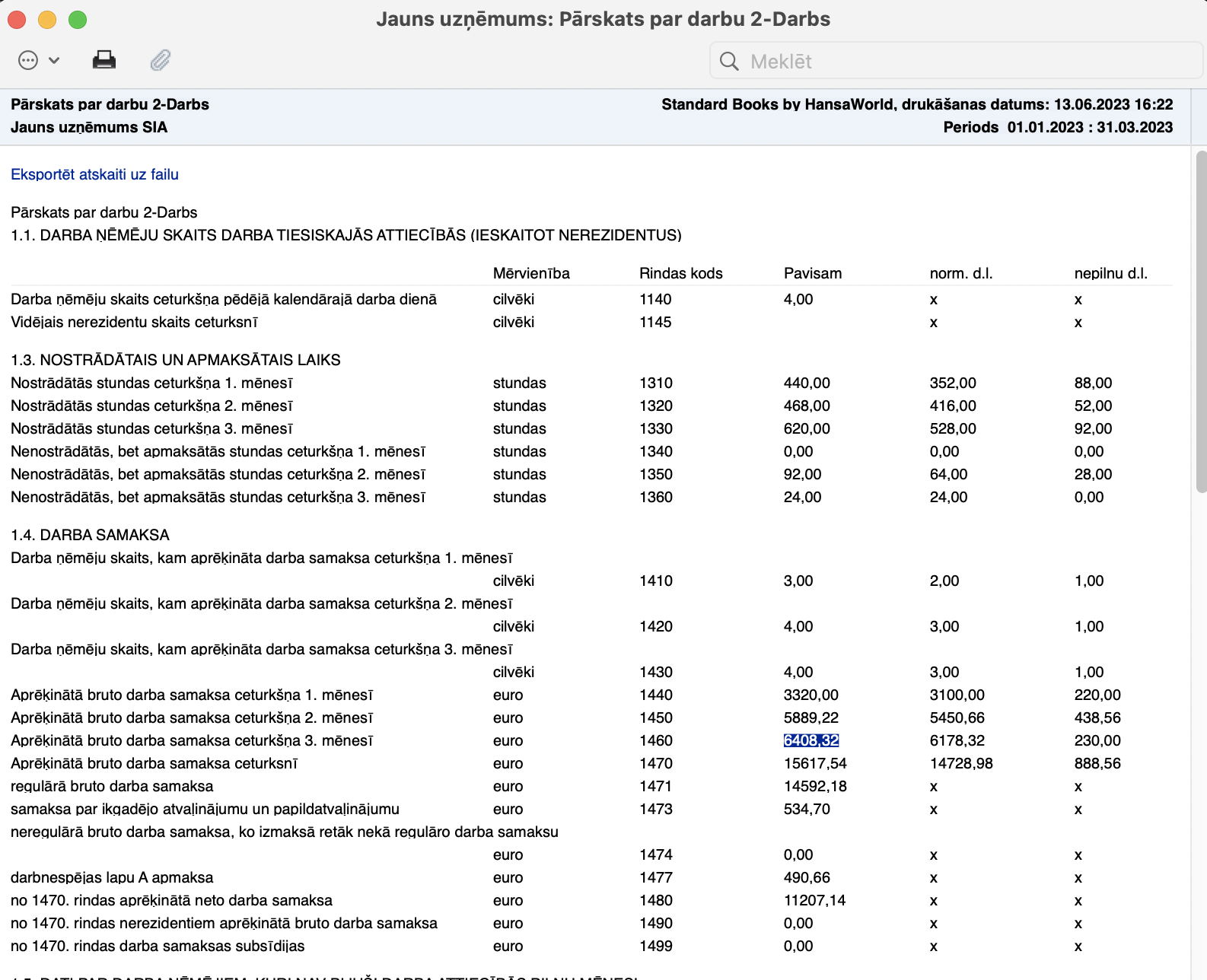 Viena no pieprasītākajām atskaitēm, kuru vēlās redzēt Latvijas Centrālā Statistikas Pārvalde (CSP) ir 2-darbs – Pārskats par darbu. Standard ERP un Standard Books atbalsta 2-darbs ar 8.5 2022-10-22-0657 versiju.