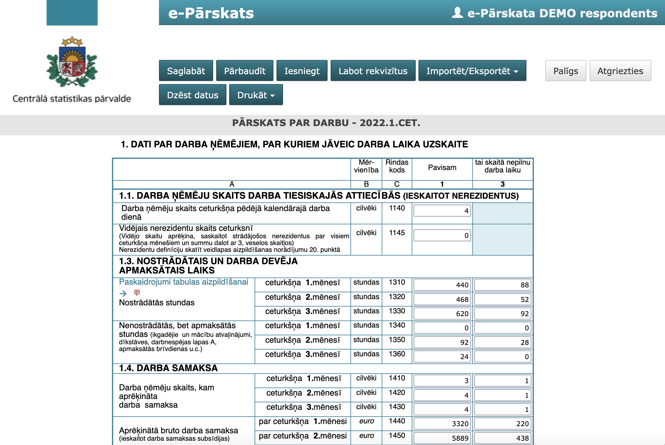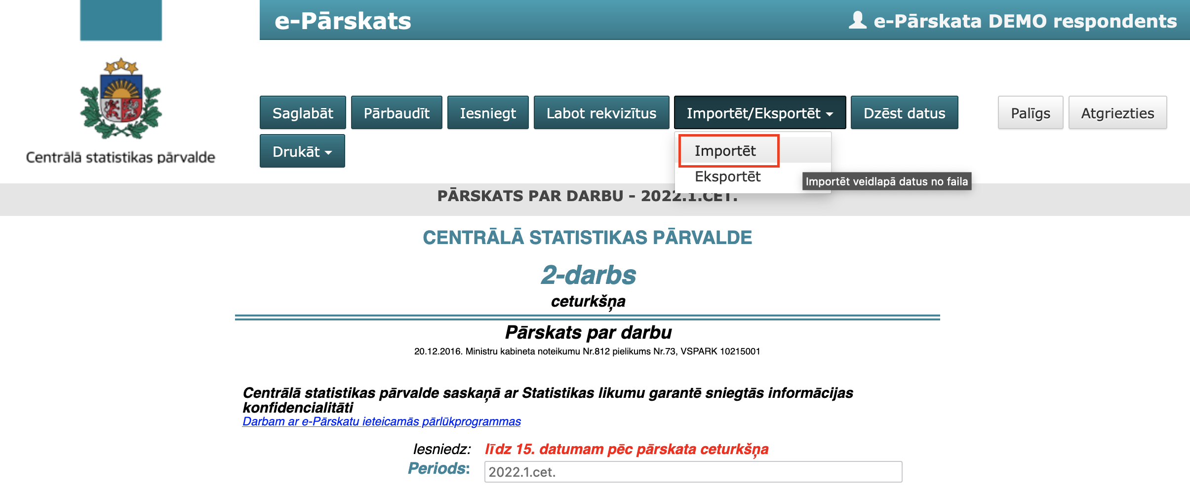 Importēt 2-Darbs atskaiti Centrālā statistikas pārvaldes (CSP) mājas lapā var atverot 2-Darbs atskaiti un uzspiežot importēt