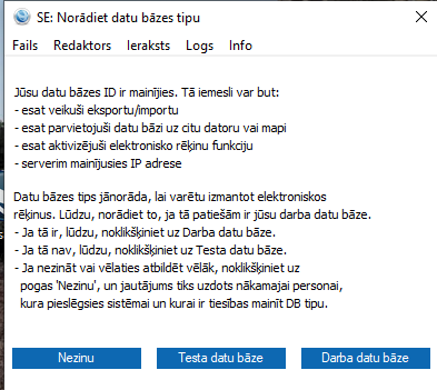 7) Iespējams (ja neparādās lasiet nākamo punktu) parādīsies paziņojums Norādiet datu bāzes tipu.