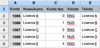 Ja vēlaties ir iespēja pievienot vēl citus laukus, papildinot tabulu datu importa logā un jūsu Excel failā, ko sagatavosiet importam. Lauku nosaukumus varēsiet atrast dodoties uz moduli Tehniskie parametri > Atskaite Eksporta/Importa formāti > Vc kods AccVc. Lauki jāpievieno tabulu datu importa logā un jūsu Excel failā, ievērojot šajā logā redzamo secību.