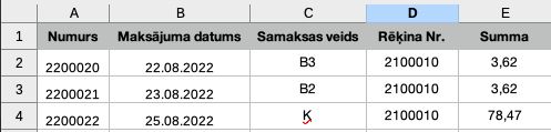 Rēķina datums – datumam jābūt formātā, kāds norādīts datu importa logā (pēc noklusējuma – DD.MM.YYYY)