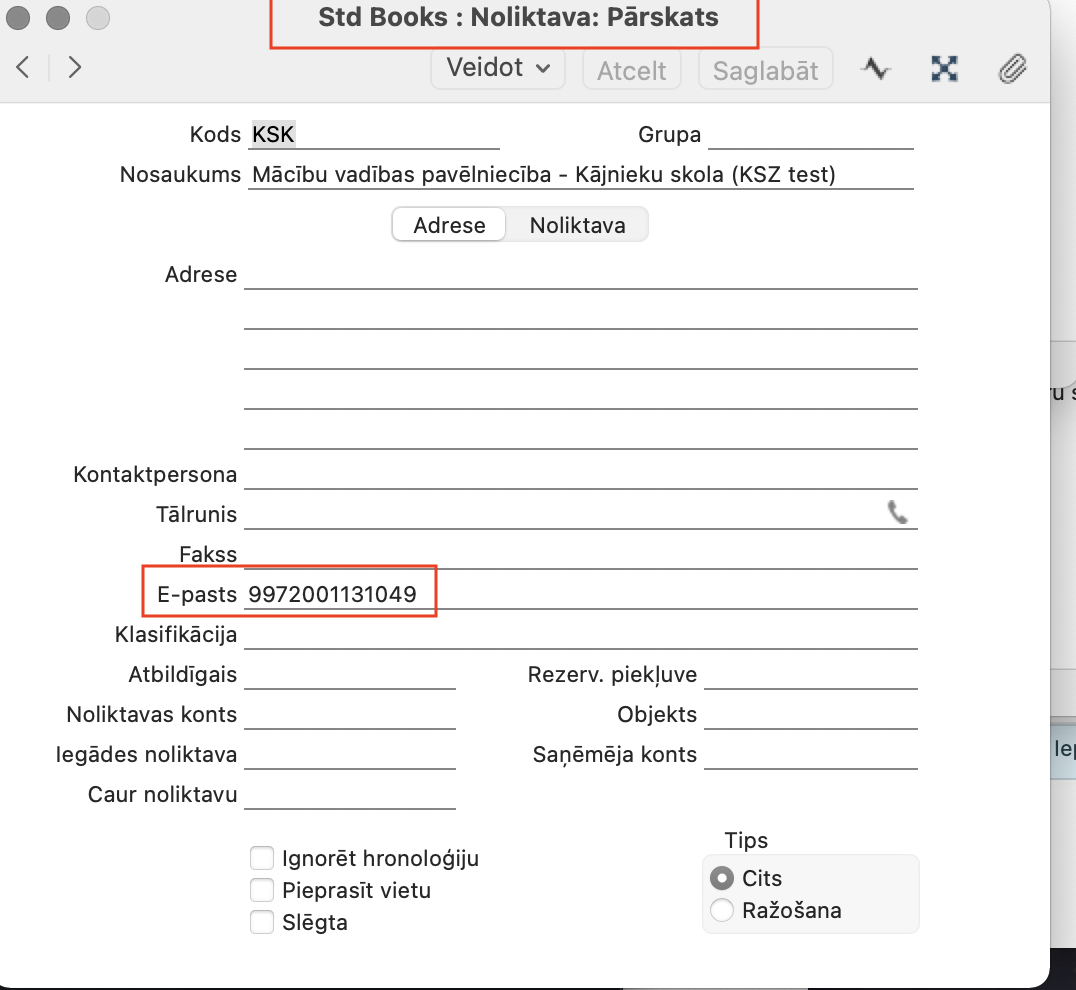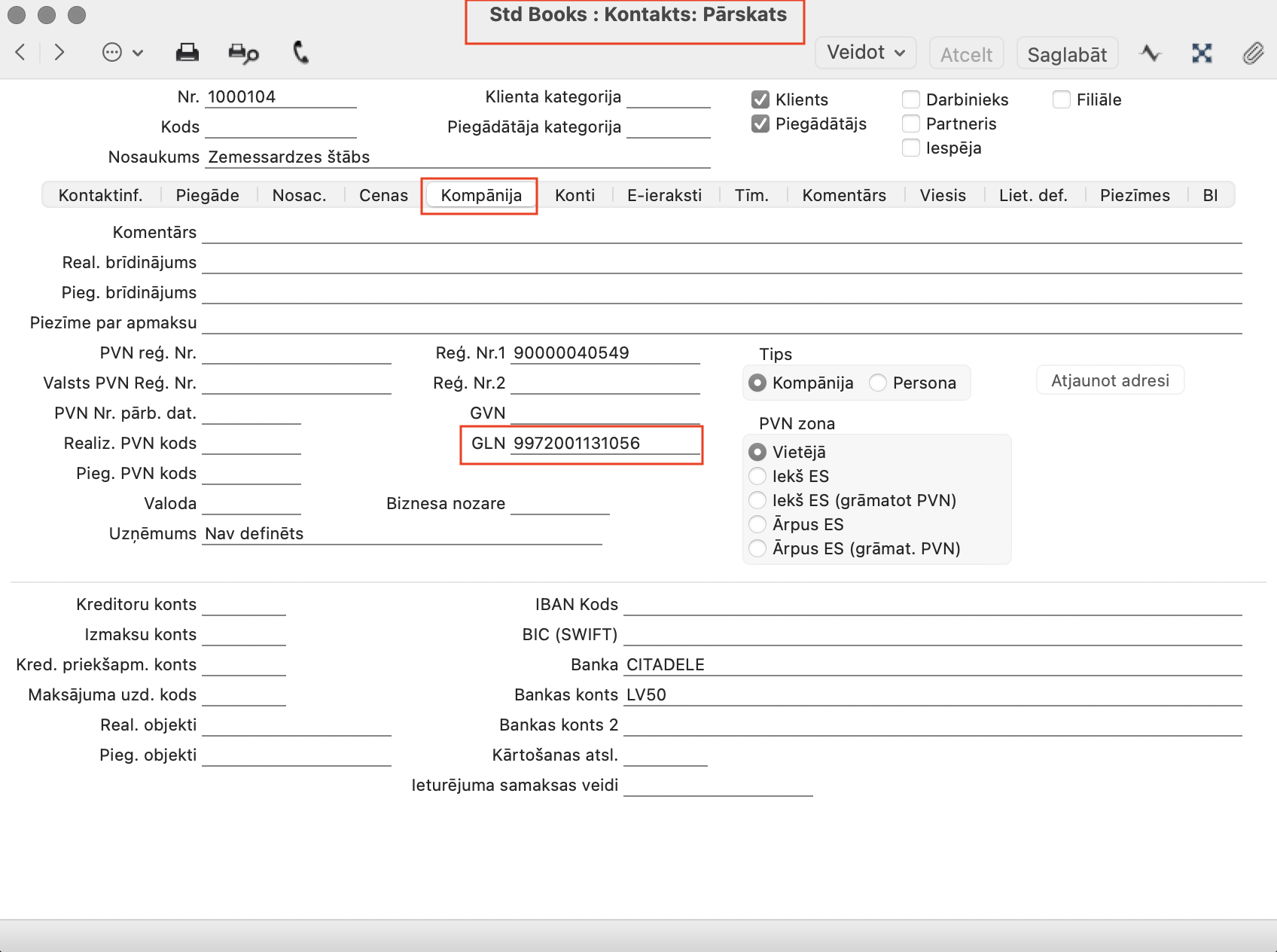- Piegādātājam to norāda Kontakta ierakstā > Kompānijas sadaļā > laukā “GLN” (nejaukt ar GVN!)