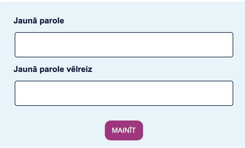 - Uzstādot jauno paroli, lietotājs tiks automātiski pieslēgts sistēmai.
