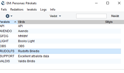 1. Ieejiet pirmajā kompānijā, kas tika izveidota un pārliecinieties, ka ir izveidota personas kartītes vajadzīgajiem lietotājam, kuram vēlaties izveidot Globālo lietotāju (modulis Sistēma > Reģistri > Personas).