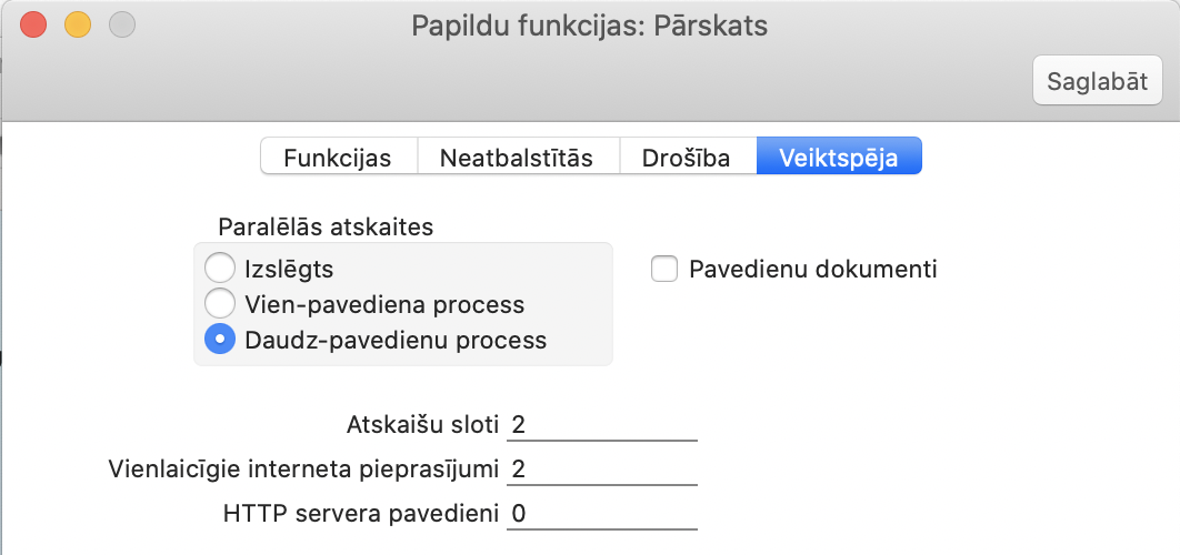 Sistēmas modulis > Iestatījumi – Papildus funkcijas – jāsaliek šādi sloti: