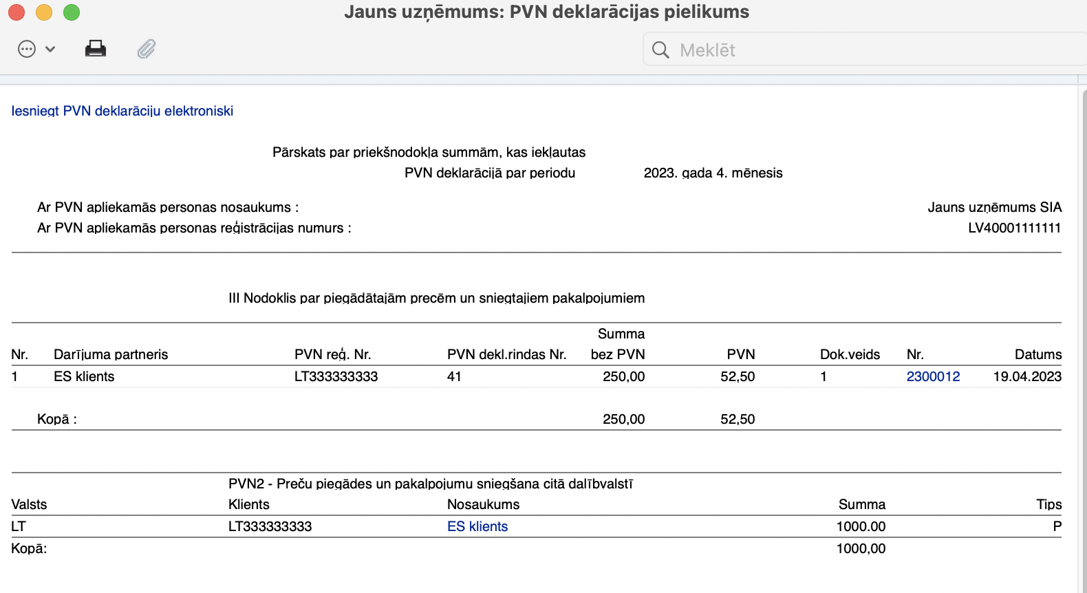 Gadījumā, ja ES klientam taksācijas periodā bija izrakstīti citi arī rēķini ar ES zonas PVN, tie atšifrēsies PVN deklarācijas pielikumā PVN2.