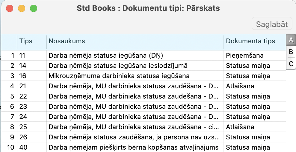 Atsevišķi informāciju par Ziņu kodiem ir iespējams iestatīt Personāls > Iestatījumi > Dokumentu tipi (Rīkojumi tipi, iestatījuma nosaukums ir atkarīgs no jūsu programmas versijas), sadaļā C.