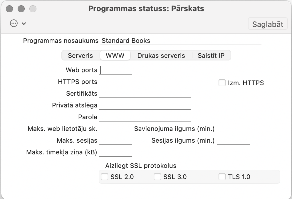 - Papildu varat iestatīt citas opcijas, piem. atspējot nedrošas HTTPS SSL 2.0, SSL 3.0 un TLS 1.0 versijas.
