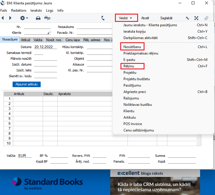 Kā izrakstīt rēķinu par klienta pasūtījumu?