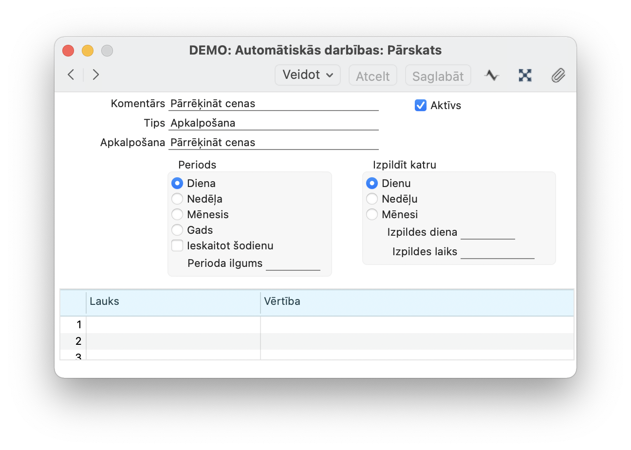 4. Ir iespējams šo darbību padarīt par automātisku izmantojot moduļa Sistēma > Iestatījumi > Automātiskie fona uzdevumi, piemēram, šādi: