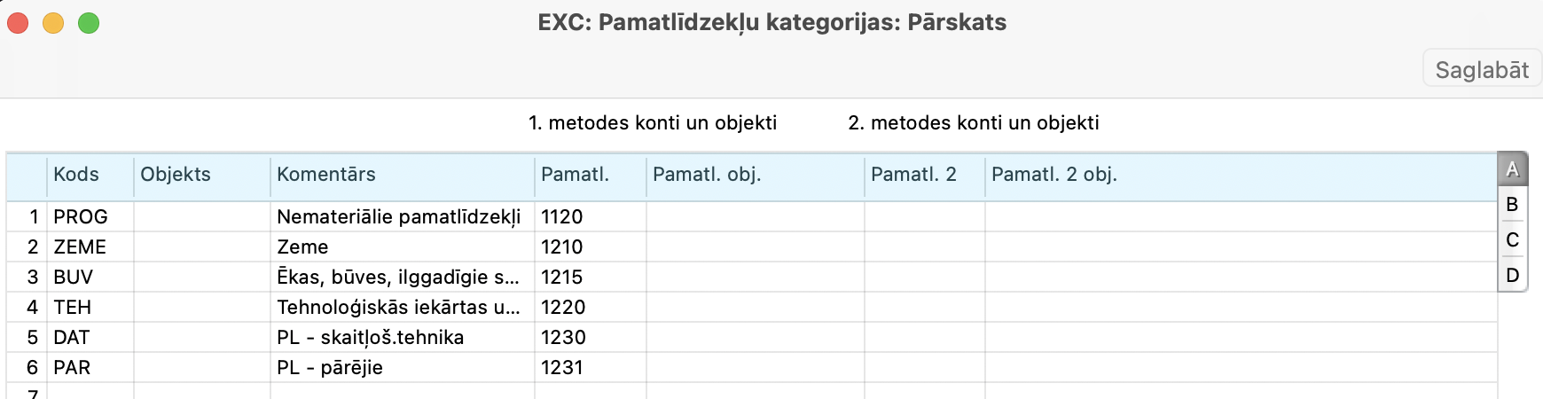 - Pamatlīdzekļu grupu kartītēs var norādīt, kā tās tiks atspoguļotas atskaitēs.