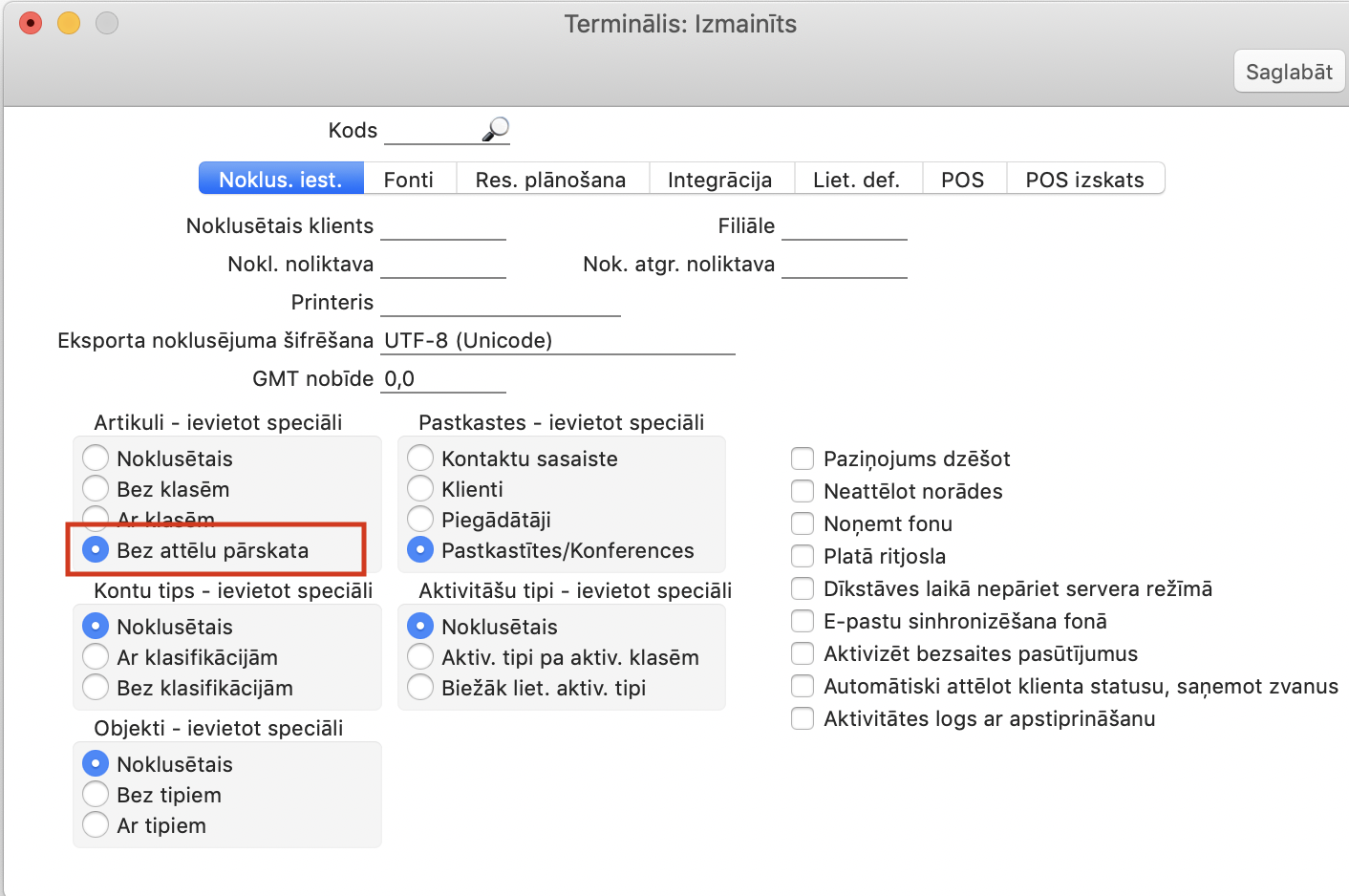 Jādodas uz moduli Lokālie uzstādījumi > Iestatījumi > Terminālis. Un sadaļā “Artikuli” jāizvēlas “Bez attēlu pārskata”:
