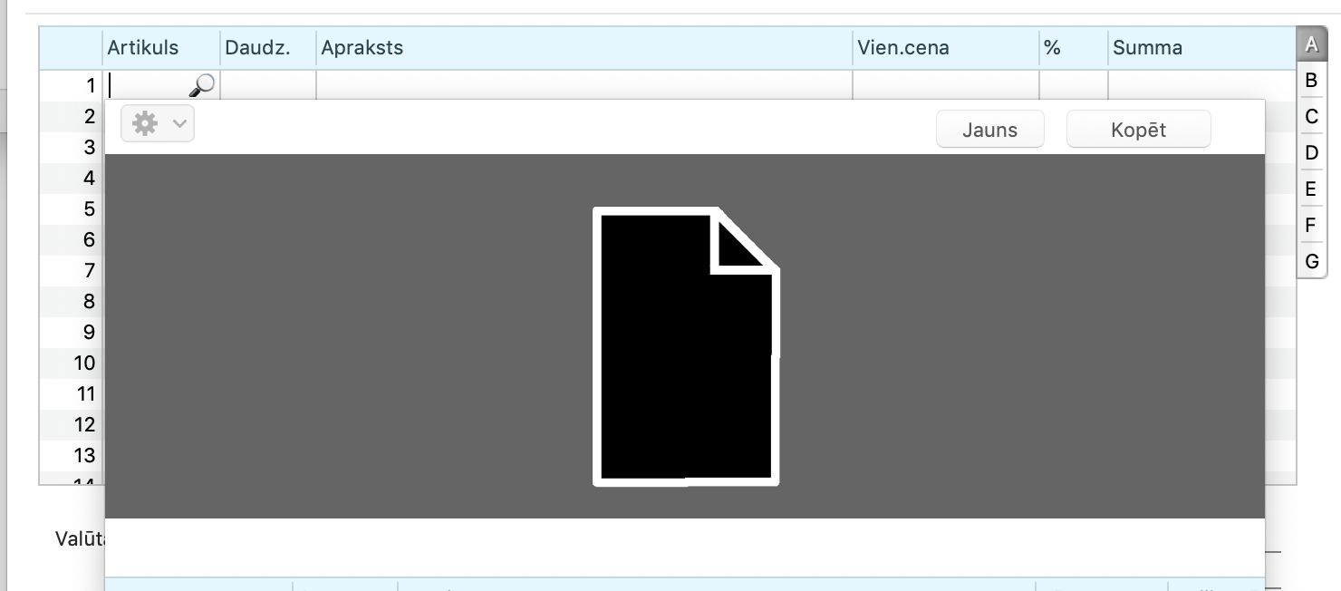 Pēc noklusējuma Realizācijas rēķinos, izvēloties artikulus no saraksta tiek uzrādītas arī artikulu bildes.