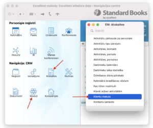 1. Modulis CRM vai Realizācija >Atskaites > Klientu statuss. Šajā funkcijā ir iespējams definēt nepieciešamos klientus, to kategorijas un klasifikācijas pēc izvēles.