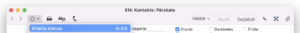 2. Ātrā Klientu statusa atskaite pieejama par konkrētu klientu reģistros Kontakti un Rēķini. Ieraksta rīkjoslā spiediet uz Operāciju izvēlnes pogas un izvēlieties opciju “Klientu statuss” (vai izmantojiet taustiņu kombināciju cmd+shift+E/Ctrl+shift+E).