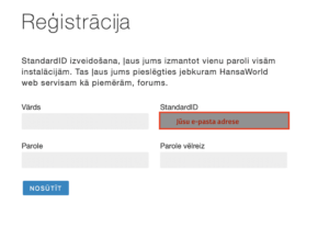 StandardID – darbinieka e-pasts (uz šo epastu tiks nosūtīts reģistrācijas pieprasījums, ja vēl nav veikta StandardID lietotāja reģistrācija )