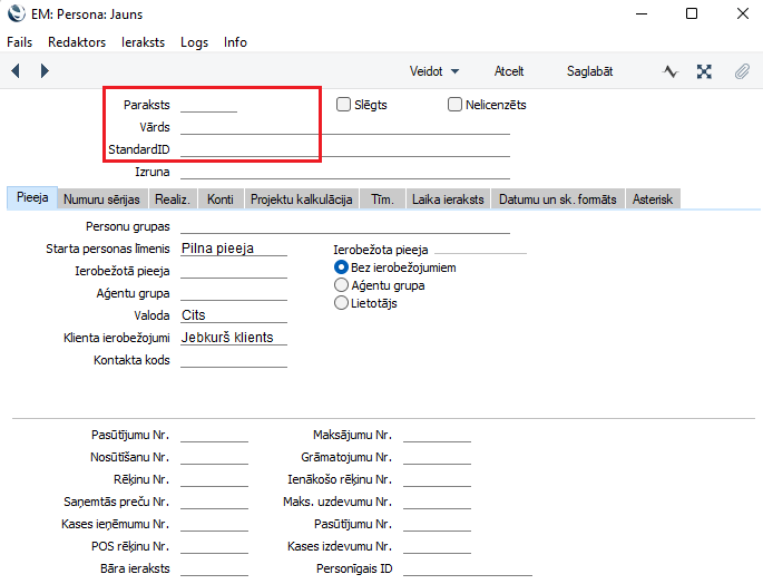 Persona – grāmatvedības nolūkā izveidots ieraksts, lai, piemēram, konkrētam darbiniekam izveidotu Avansa norēķina ierakstu. Abos gadījumos tiks izveidots ieraksts Sistēmas moduļa Personas reģistrā.