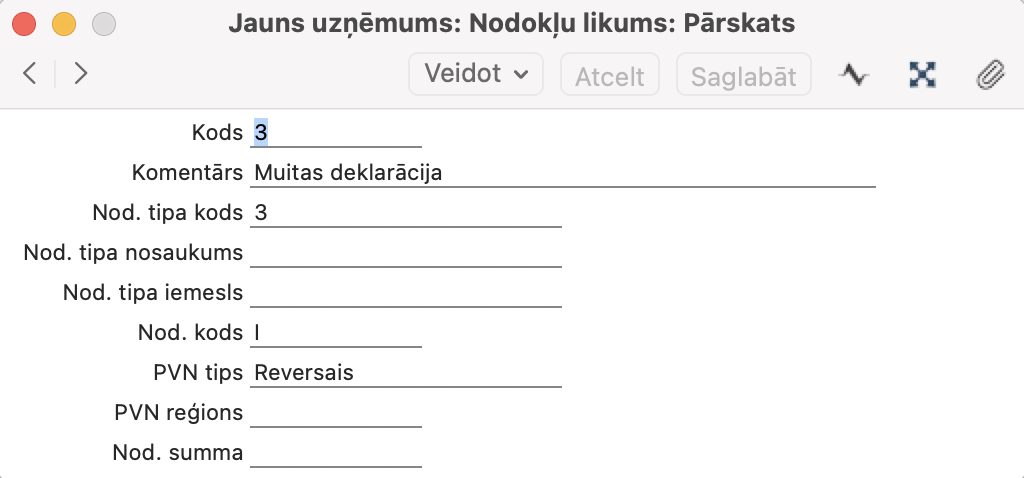 Kā programmā nodefinēt muitas darījumu Dokumenta veidu PVN deklarācijai?