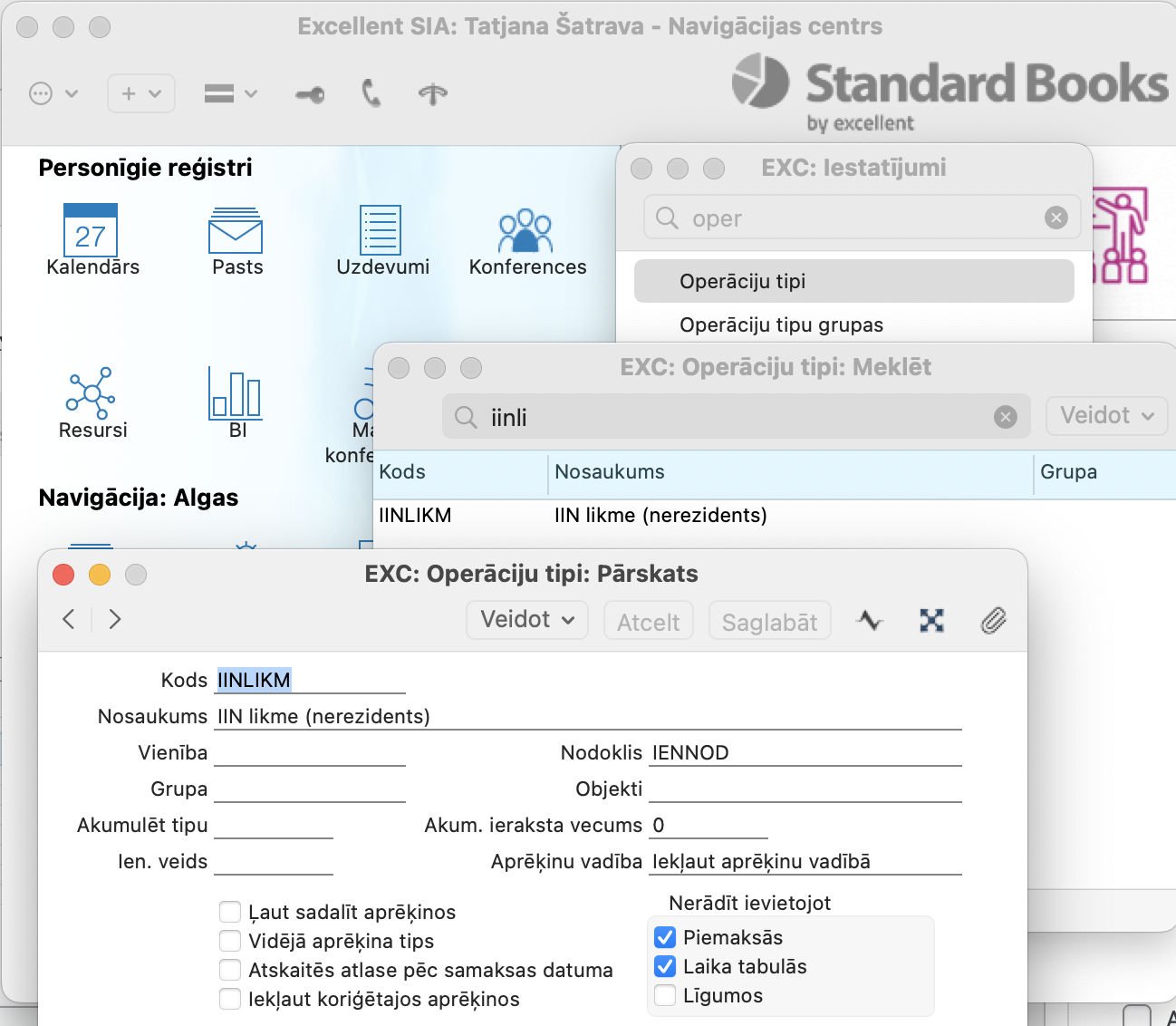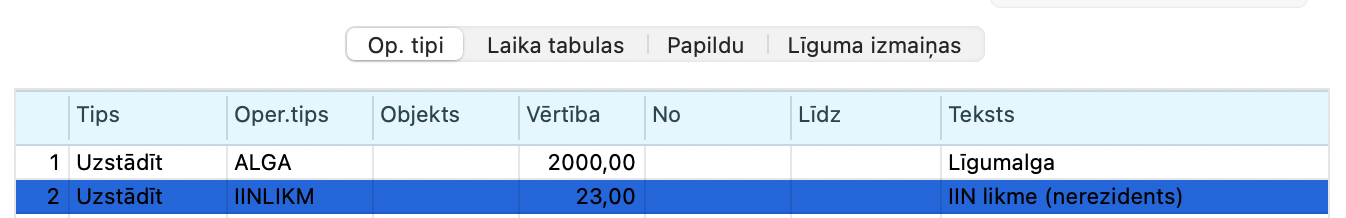 Oper.tips – IINLIKM (IIN likme nerezidentiem), to var iestatīt erot uz Algas > Iestatījumi > Operāciju tipi