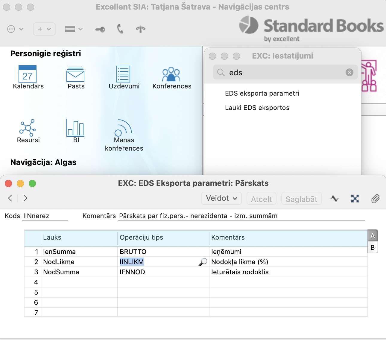 5. Jāizveido formulu Nerezidentiem Algas > Iestatījumi > EDS Eksporta parametri.