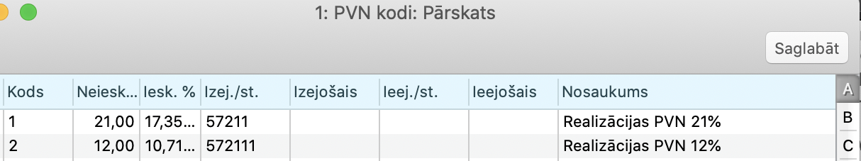 Kā sagatavot iestatījumu PVN kodi darbam?