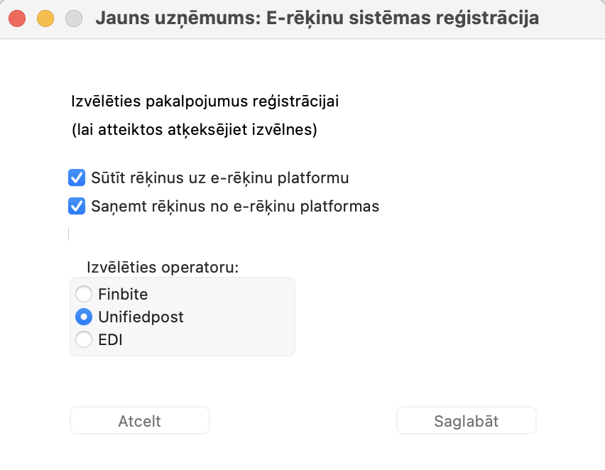 Lai sāktu darbu, pirmkārt, ir nepieciešams noslēgt līgumu par e-rēķinu izmantošanu ar integrācijas partneri Unifiedpost AS, nosūtot pieteikumu uz e-pastu: atbalsts@unifiedpost.com.