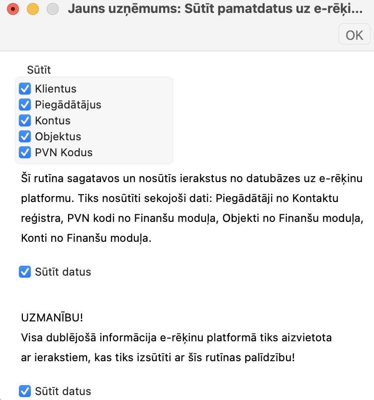 Jauniem klientiem sākotnējie uzstādījumi ir jau aktivizēti, savukārt esošajiem klientiem, kas jau ir noslēguši līgumu par e-rēķinu izmantošanu, jānosūta pieprasījums mūsu Atbalsta dienestam, lai saņemtu nepieciešamo parametru failu un instrukcijas tā augšupielādei.