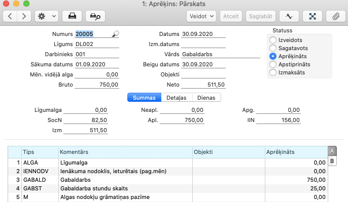 Pēc Laika tabulas (kopsummas) aizpildīšanas jāizveido standarta Algas aprēķina procedūru.