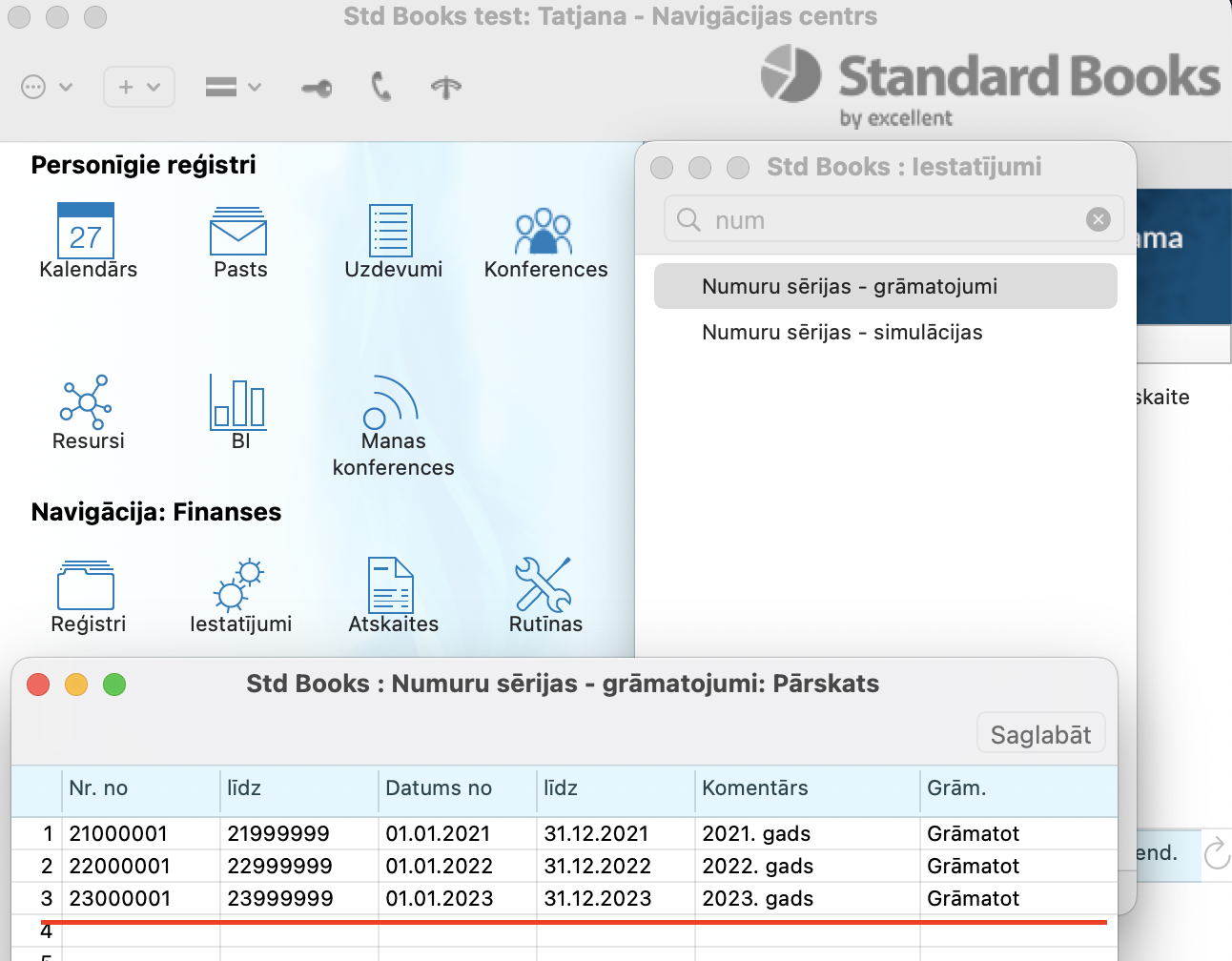 1. Vai Finanses > Iestatījumi > Numuru sērijas – grāmatojumi ir ievadīta perioda numuru sērija un numerācija “līdz” nav noslēgta (vai ir pieejamie brīvi numuri).