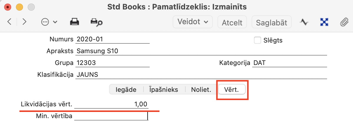 NB! Likvidācijas vērtība ir vērtība, zem kuras pamatlīdzekļi vairs netiek amortizēti (tā saucamā Pamatlīdzekļu galējā vērtība). Uzņēmums var arī nepielietot šo vērtību.