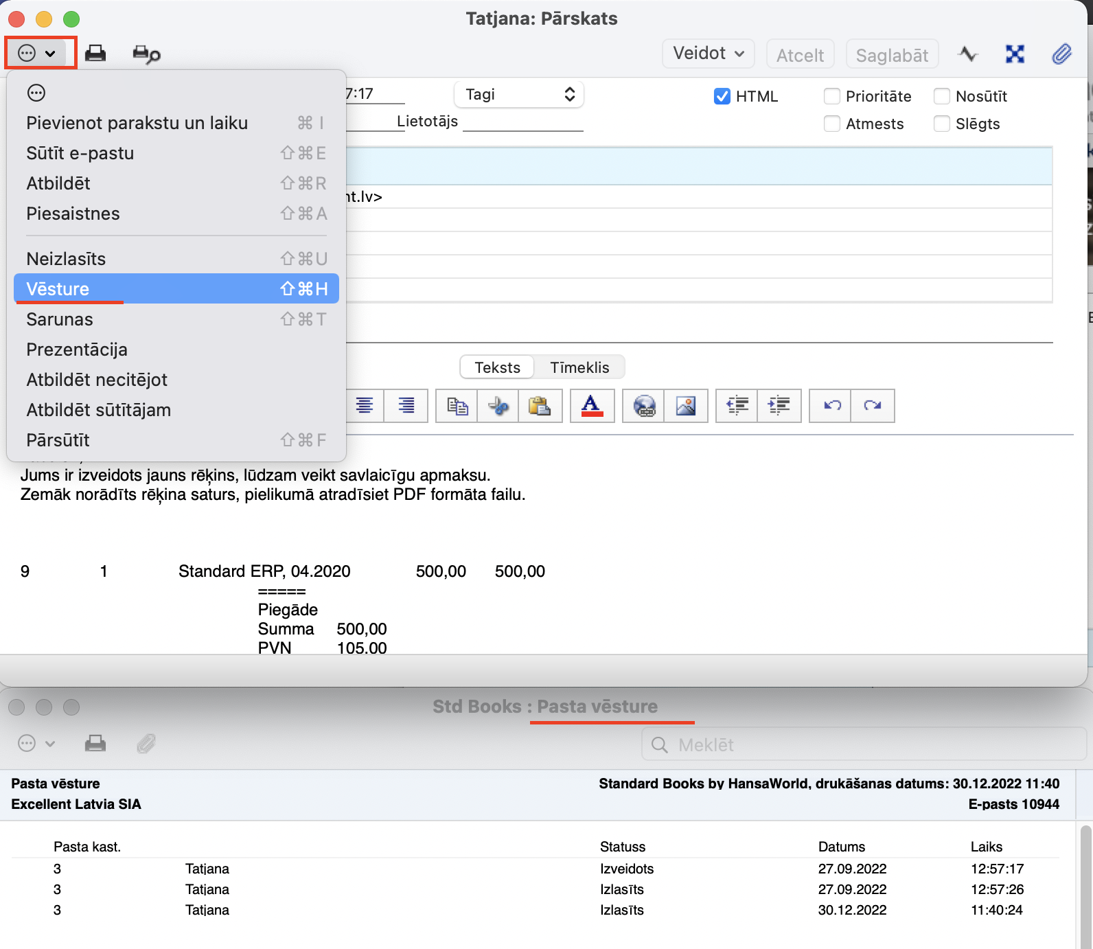 Piemēram, e-pasta ieraksta Vēsture