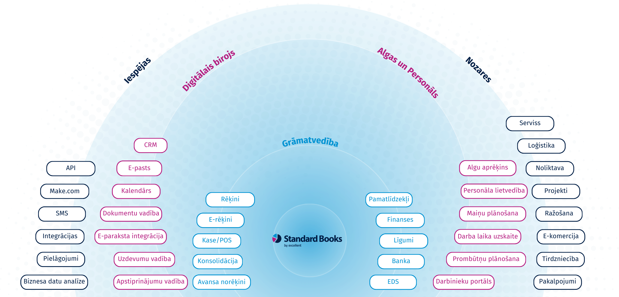 Turklāt pieejama plaša moduļu izvēle, kas palīdz automatizēt un vienkāršot ikdienas darbu.